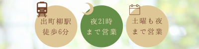 お待たせする事がないよう、予約制を採用。夜21時までだから通いやすい!